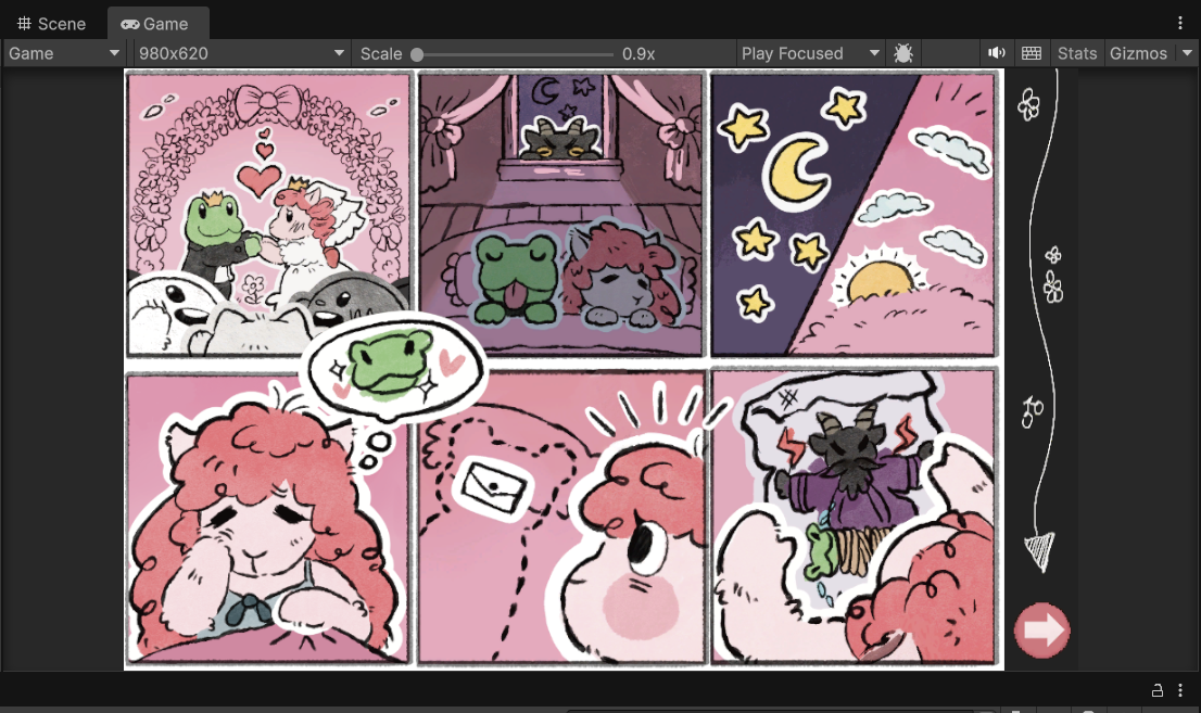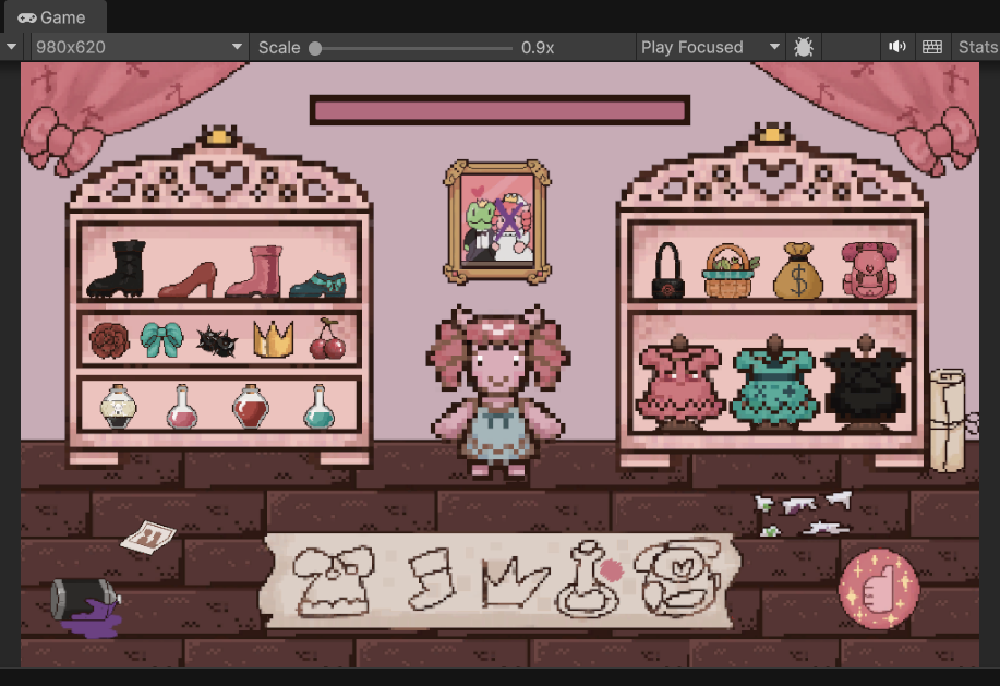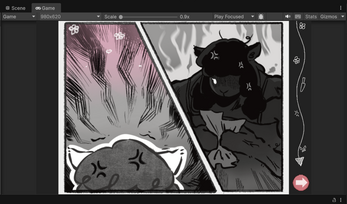 My visual assets were created using procreate. I have used a smaller canvas for the start scene and the in-game scene so I could give it a more pixel like art style. For the comic / ending scenes I have used a bigger canvas with a different brush to give it a paper like texture and a smoother line art .